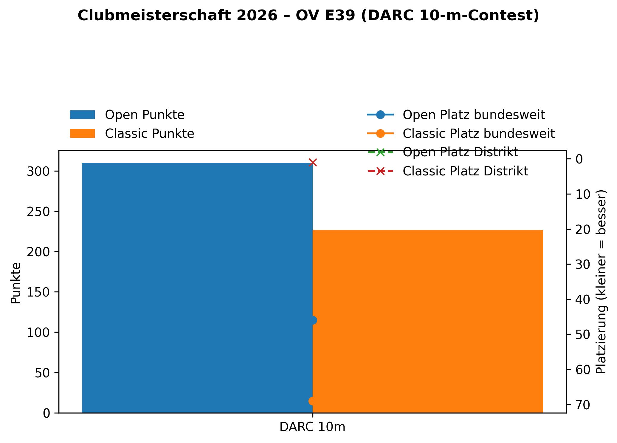 Mit dem DARC 10-m-Contest ist die Clubmeisterschaft 2026 erfolgreich gestartet. Nach dem Abschluss des vergangenen Jahres beginnen Tabellen und Auswertungen nun wieder bei null – umso erfreulicher ist der starke Auftakt, den der Ortsverband Ratzeburg (E39) in diesem ersten Wettbewerb erzielen konnten.
