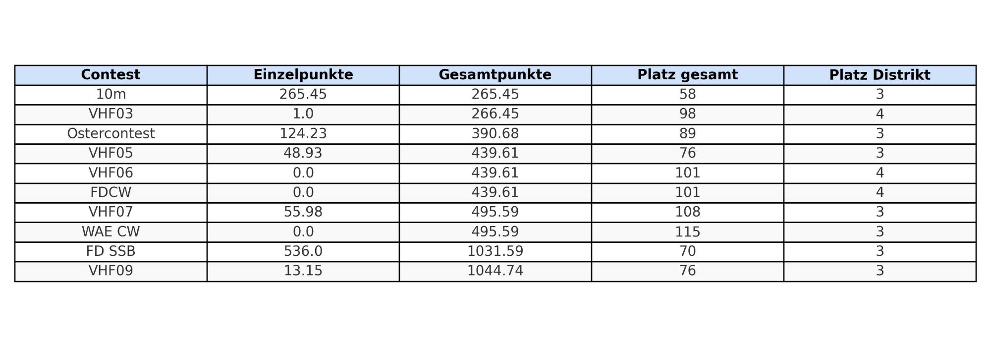 Hier war der Fieldday SSB im September der entscheidende Wettbewerb, der das gute Niveau sicherte.