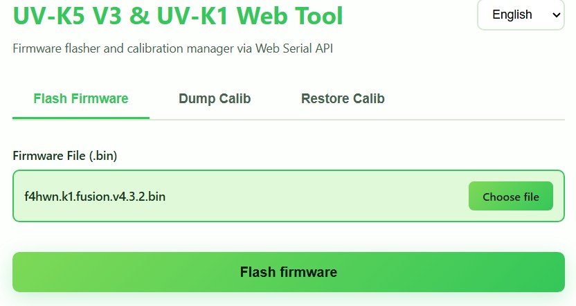 - Wählt aus, ob Ihr ein UV K1 oder ein UV K5(8) V3 flashen möchtet - über den Link kommt Ihr auf einen Web-Flasher. Hinweis: Der Flasher funktioniert nur in chromiumbasierten Browsern.