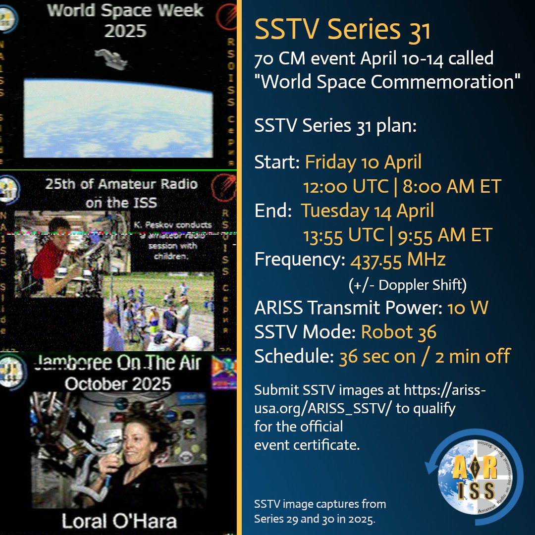 Vom 10. bis 14. April 2026 ist es wieder soweit: Die Amateurfunkstation an Bord der Internationalen Raumstation (ISS) sendet im Rahmen der ARISS SSTV Series 31 erneut Bilder zur Erde.