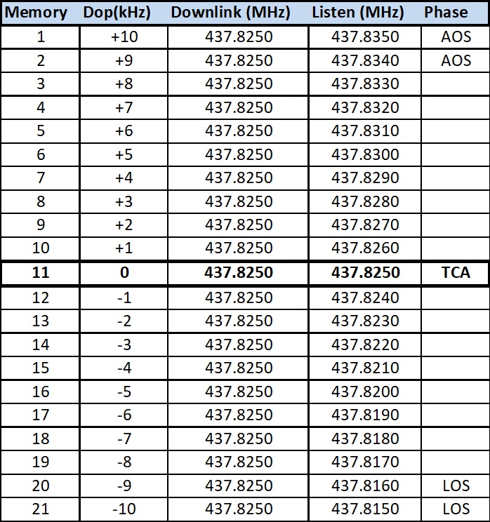 437,825 MHz FM (± Doppler-Shift)
