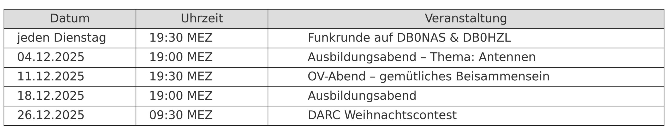 OV-Treffen und Veranstaltungen im Dezember 2025